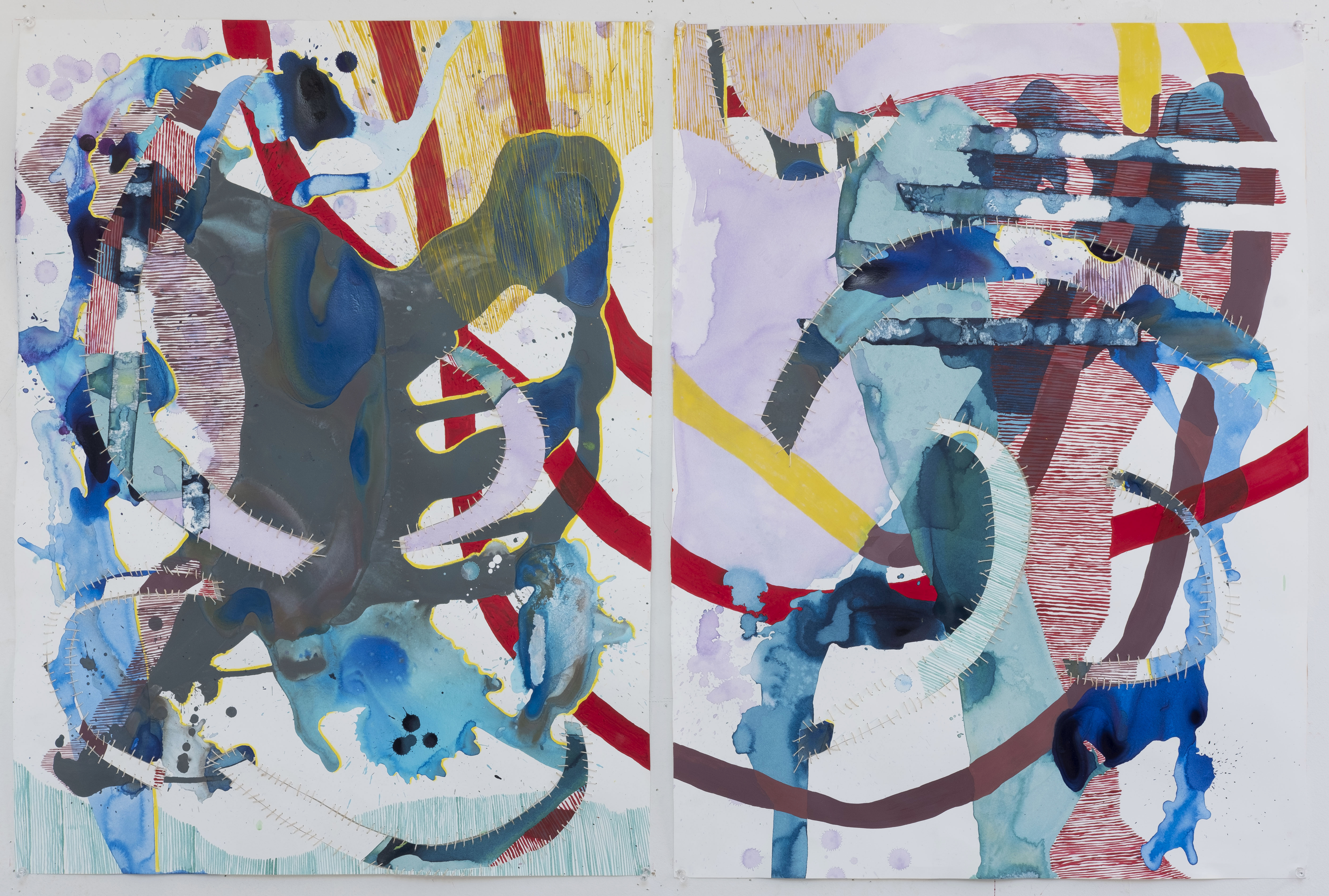 | dc.description.abstract | My thesis work consists of a body of diptych paintings on paper. Conceptually, I seek to investigate how bodies, as boundaried forms, experience the boundarylessness of energies and moods. Through a three-step procedural framework, these pieces investigate ideas of shared energy, boundaries of the physical body and holistic healing. The first step consists of pouring ink or watered down paint onto paper. The second step includes acrylic paint, ink, colored pencil and oil pastel to create various patterns and layers as a reaction to the initial spill. The third step is made up of what I am calling ‘transplants.’ In this final step, I cut shapes out of the paper, swap them with the corresponding piece in the diptych and suture them in place with embroidery thread, disrupting and shifting the composition. I use transplants as a metaphor for how we intentionally rearrange our perceptions of events in order to integrate experiences and grow towards health. The emergence of a process with somewhat predetermined steps has allowed me to be present and focus on visual concerns while in the studio. This work has emerged out of abstract expressionism. Specifically, the work of Helen Frankenthaller is discussed, as well as contemporary artists Alexandra Grant and Carrie Moyer. | en_US |