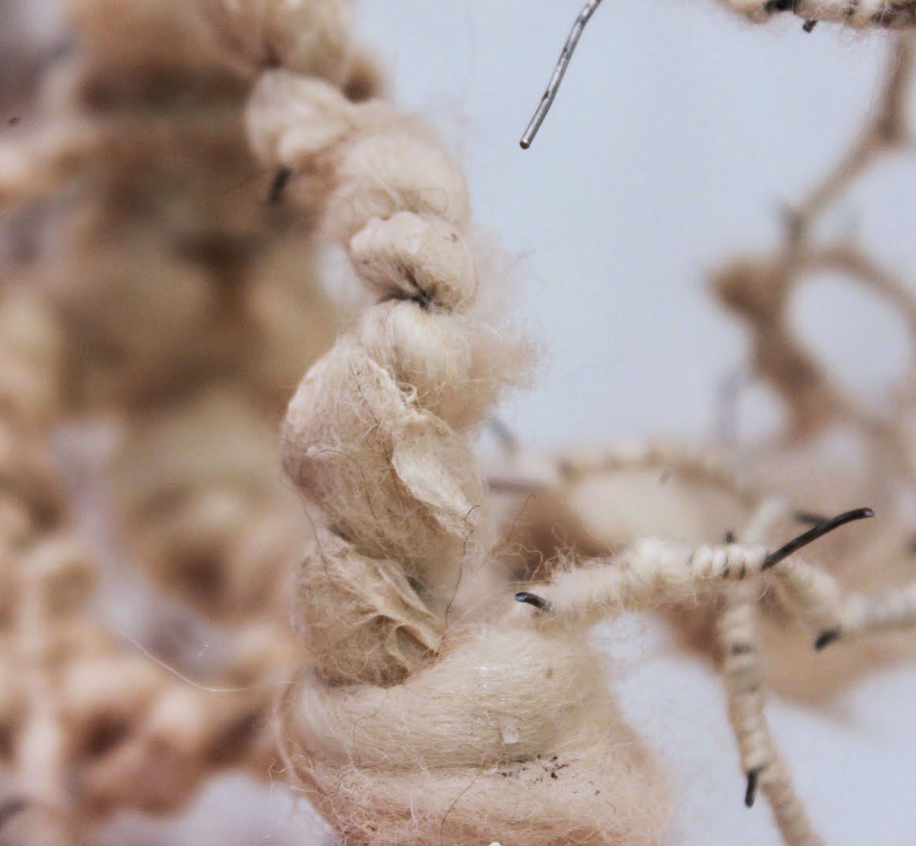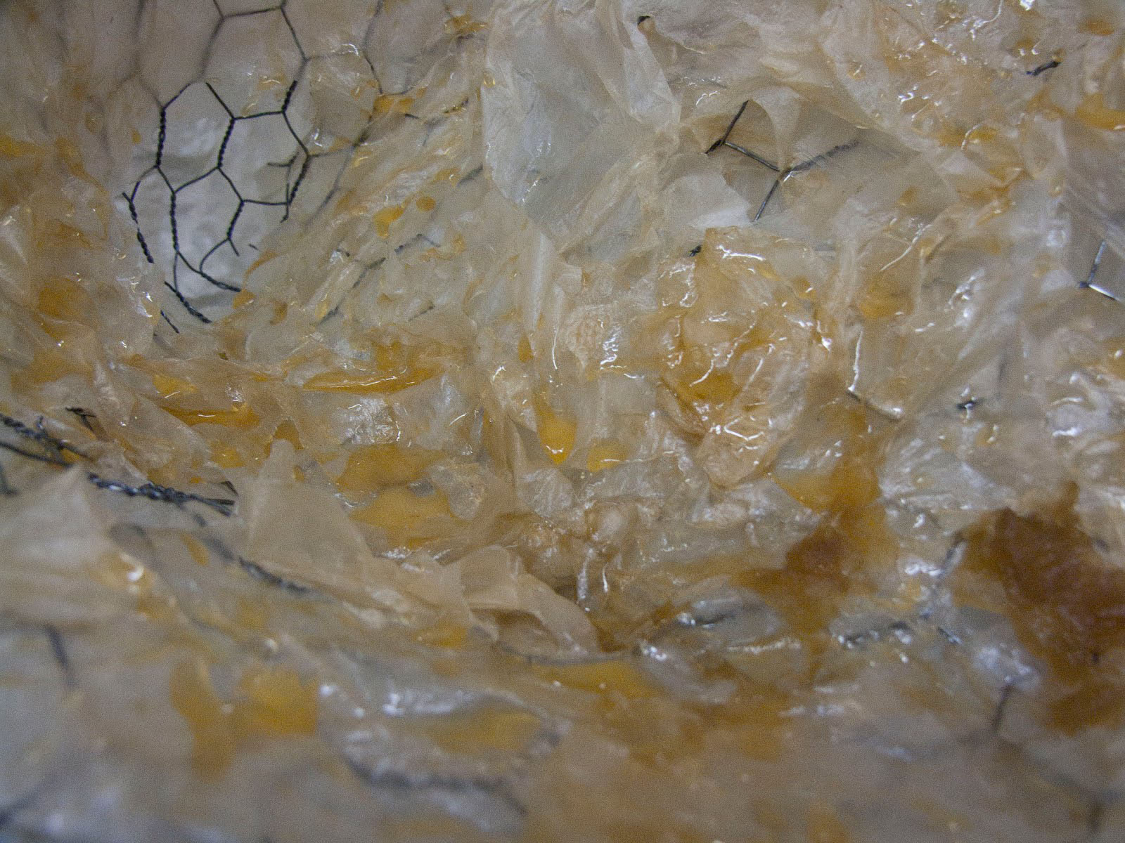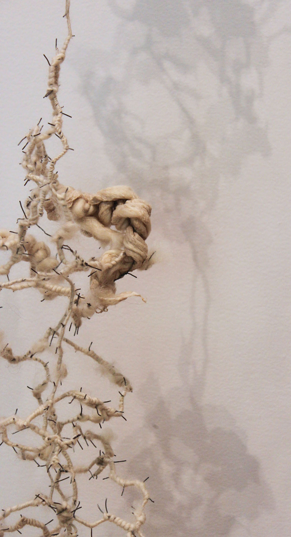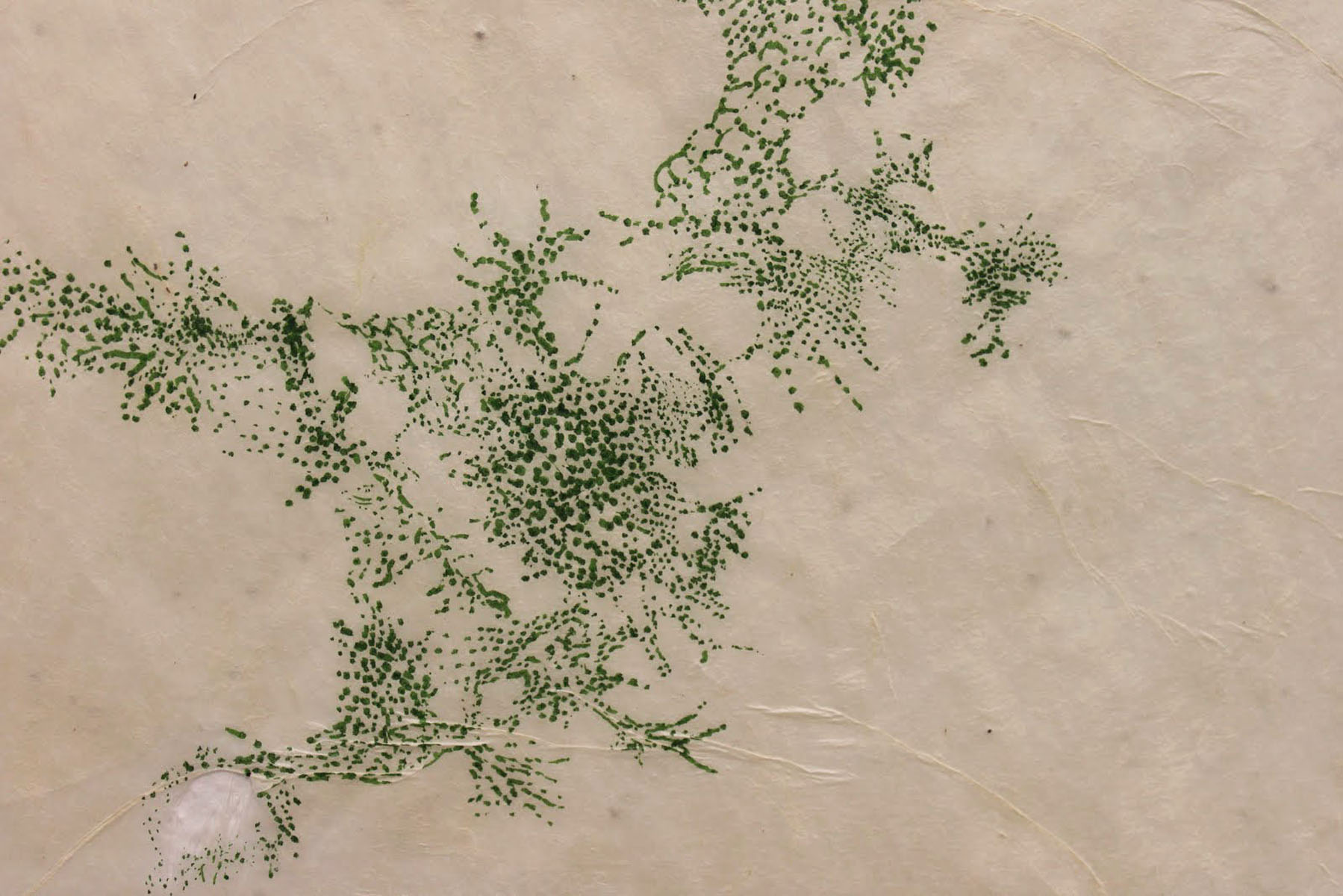 | dc.description.abstract | As an artist, I am inspired by natural processes and forms, but do not explore them in a scientific way. Instead of creating representations of them, my work remains abstract, I work intuitively, and the images ultimately come from my own imagination. Natural systems such as tissues develop from individual units that multiply into more complex structures. As these replications grow, mutations occur, disrupting the process leading to unpredictable results. The repetitions and mutations eventually create complex patterns and forms that we can see. However, the internal units and processes that form the external bodies remain invisible to the naked eye. My work consists of drawings, sculptures, and installations that have both two-dimensional and three-dimensional qualities. In order to create the feeling of a natural system I work very repetitively, always building off of small units. The work draws attention to the mutations that come about through repetition. While I started just focusing on natural growth, creating mutations by changing the patterns in my drawings, as I began to work more dimensionally the mutations came about through how I altered the form of the materials. I began to use processed materials made by a manufacturer or processed myself. The materials I make include: handmade paper, paper pulp, cooked kozo (paper mulberry bark), cranberry sauce, and spun wool. The industrial materials include: plaster cloth, chicken wire, wire, honey, corn oil, pencil, pen, and ink. Combining materials, such as hand-spun yarn with manufactured wire or honey with dried handmade paper, formed contradictions that came to represent the mutations. These contrasting materials created tension in the work through oppositions that included: order versus chaos, growth versus decay, outside versus inside, small versus large, soft versus hard, and wet versus dry. However, my work at the same time strives to achieve a balance between these conflicting forces. While there is a focus on the internal structures that create organisms, the sculptures as a whole form into individual complex organic bodies. The work gives off an ephemeral, weightless, but also growth-like quality to mimic the feeling of something living. Recent installations have illuminated an emotional charge that results from the realization that, while organisms live and grow they eventually decay and die. | en_US |