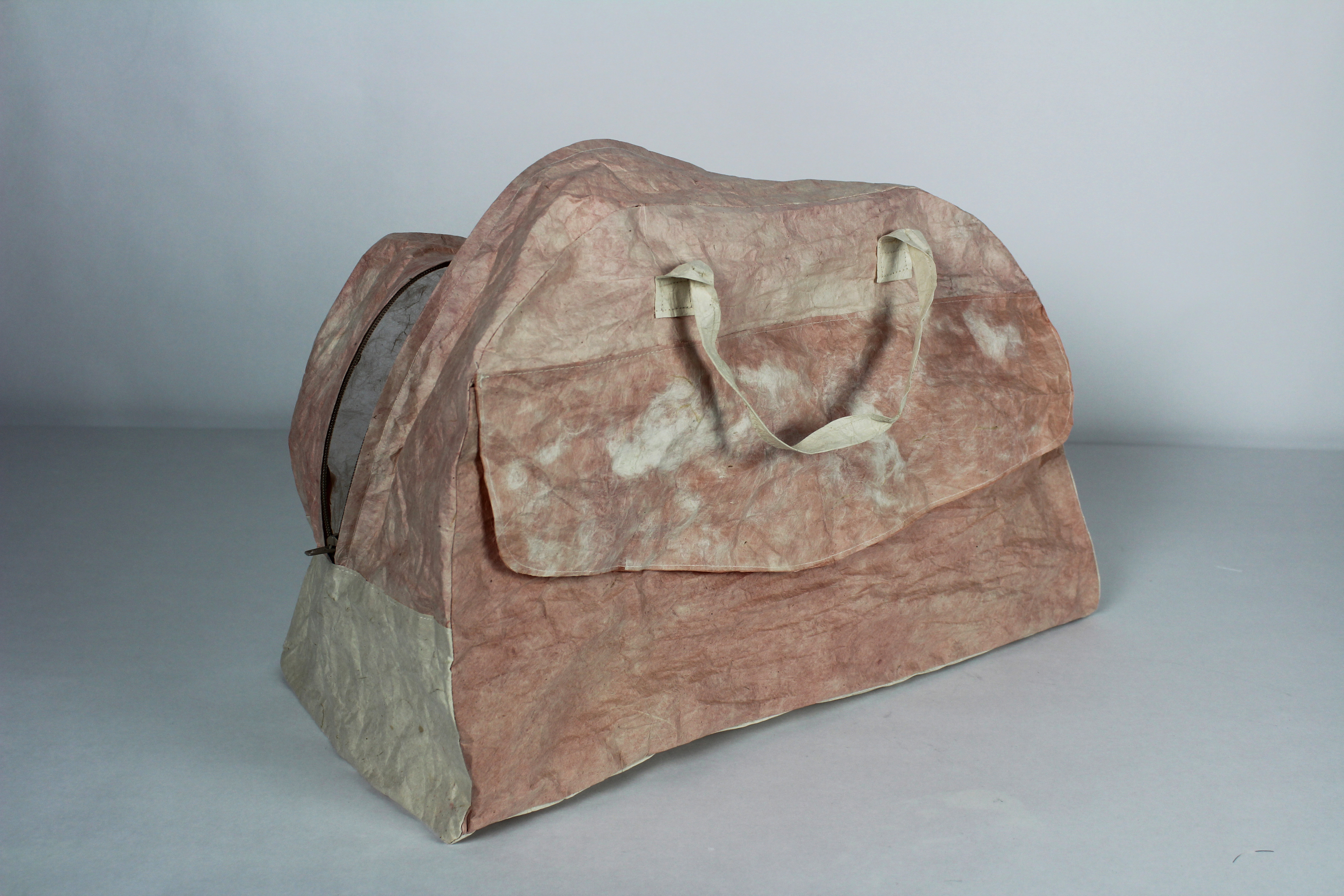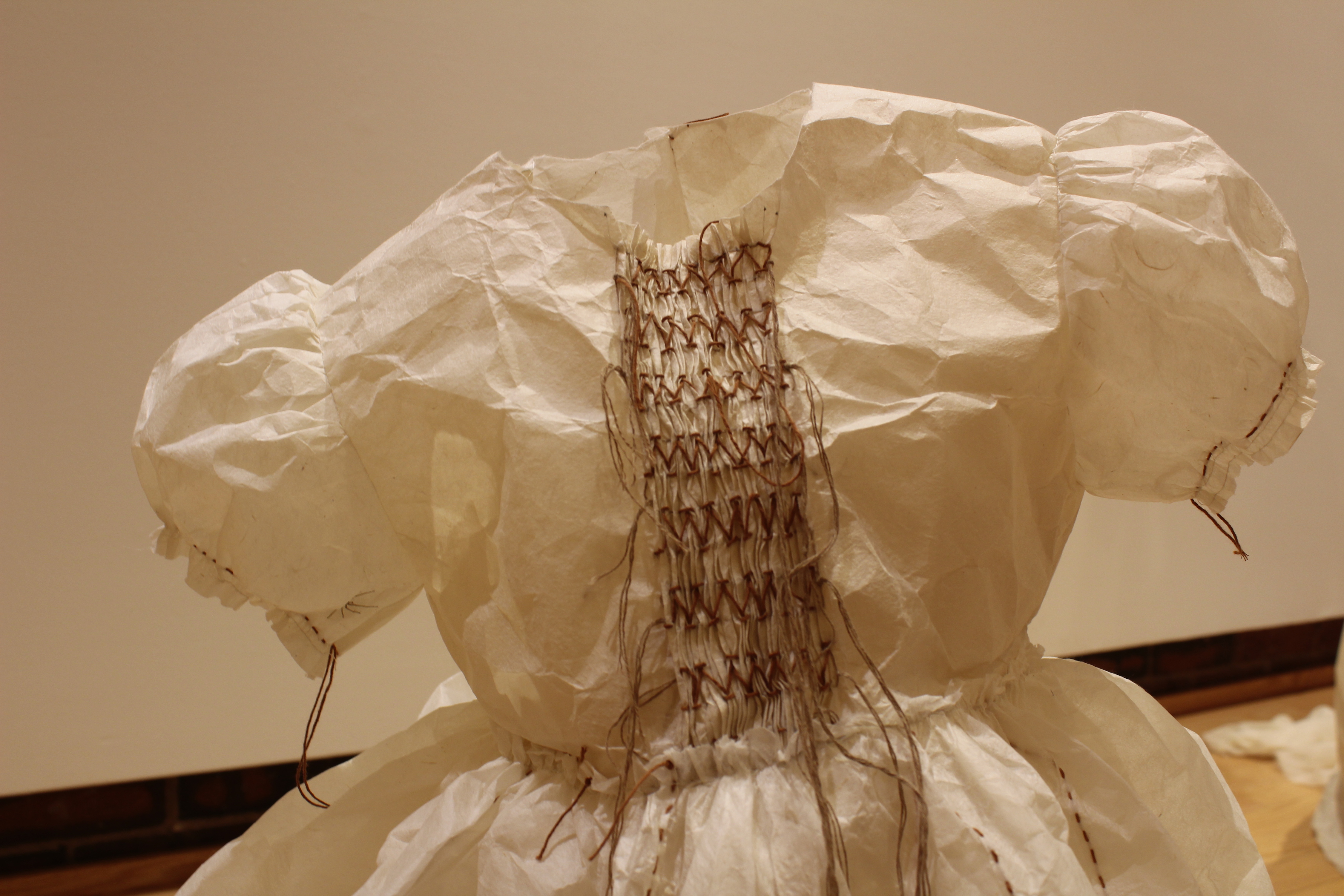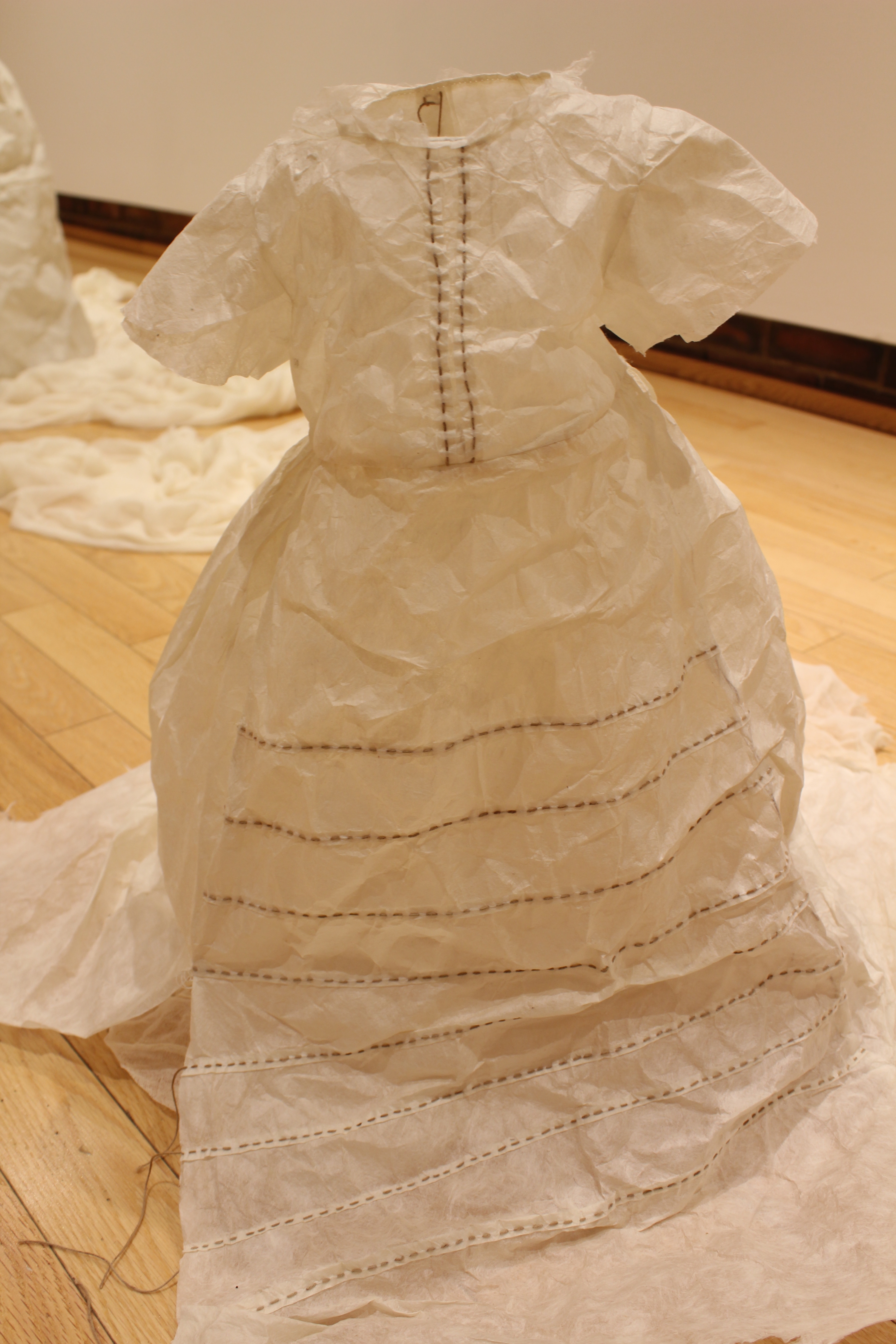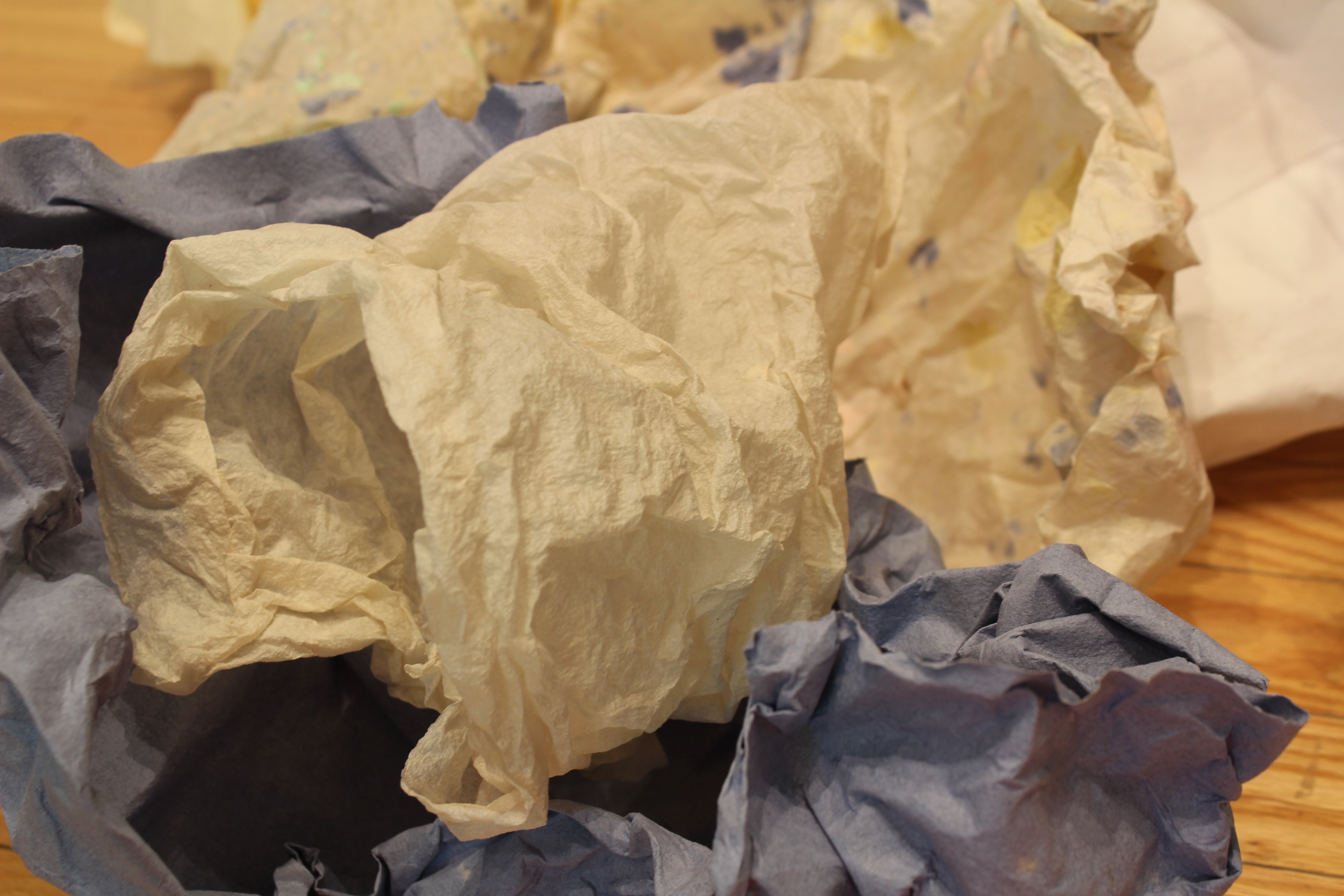 My art installations explore women’s traditional work. The process of making handmade paper mimics the often tedious, mundane, and oppressive aspects of domestic chores like doing laundry or dishes. The soaking, beating, rinsing, and pressing of fiber into sheets of paper is labor intensive. The paper with its imperfections is used to create simple objects of domesticity like an apron or laundry basket or large panels of color that focus on process. This work has helped me to reconcile with the past twenty-five years as a mother. Art making creates a foundation from which to understand and reclaim oneself.
