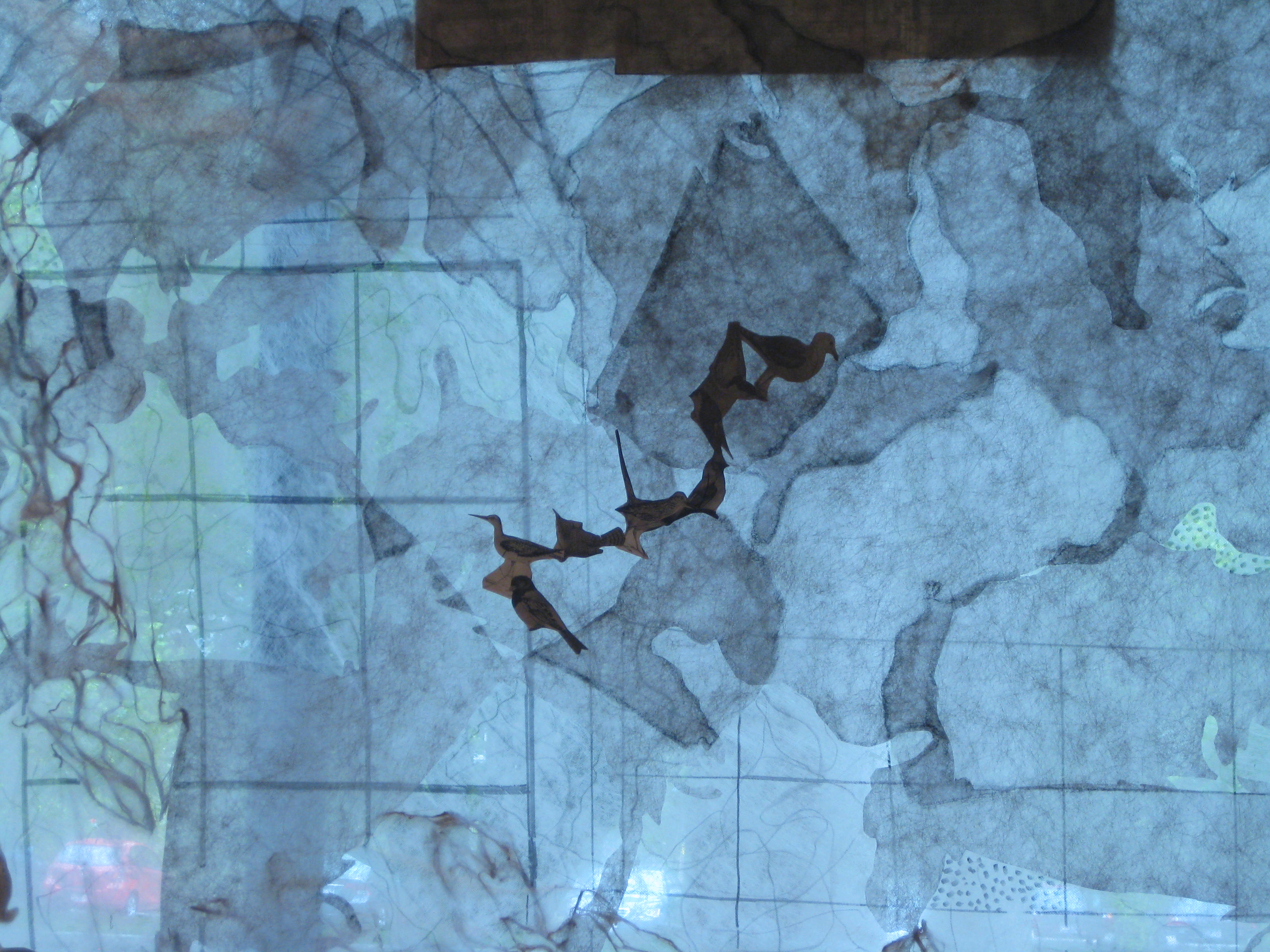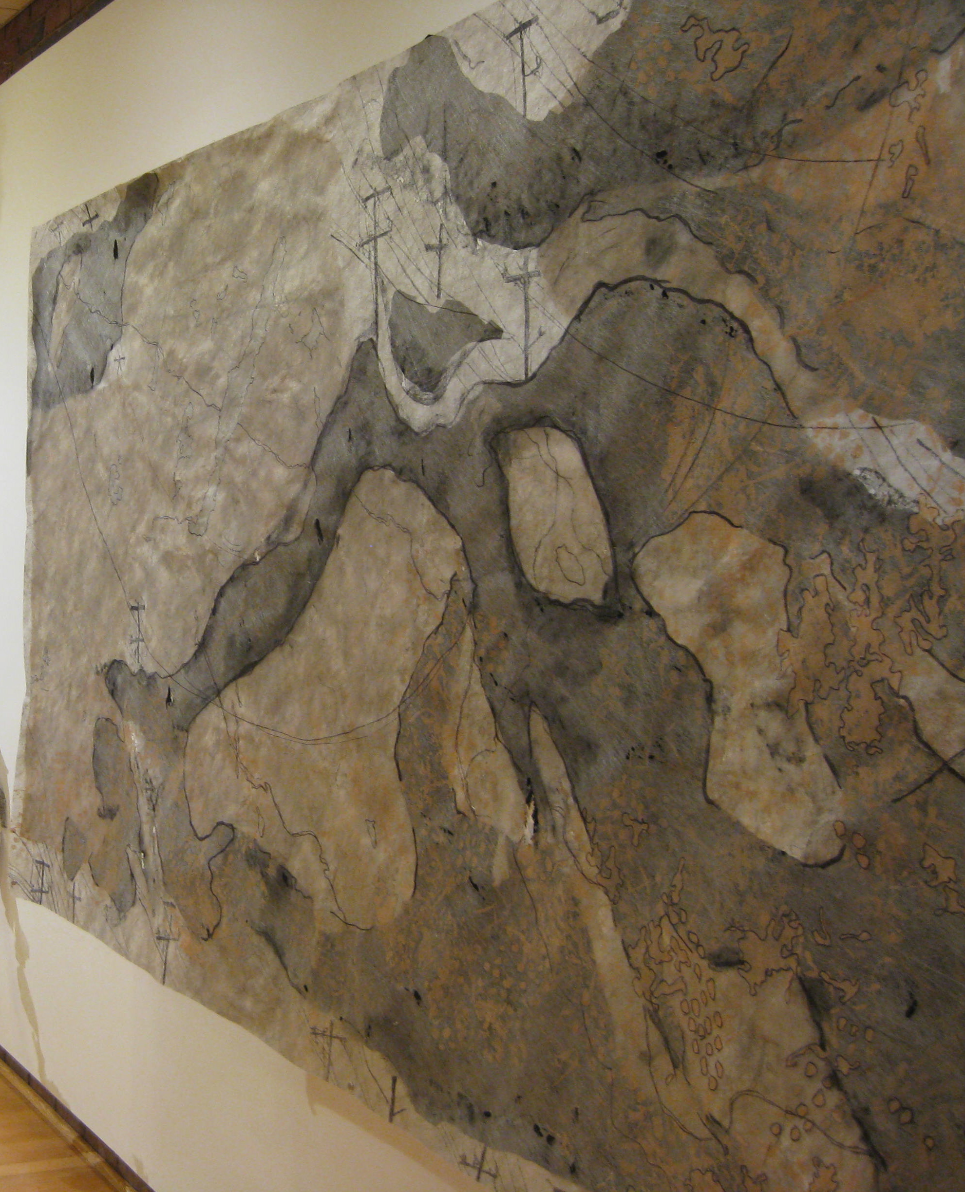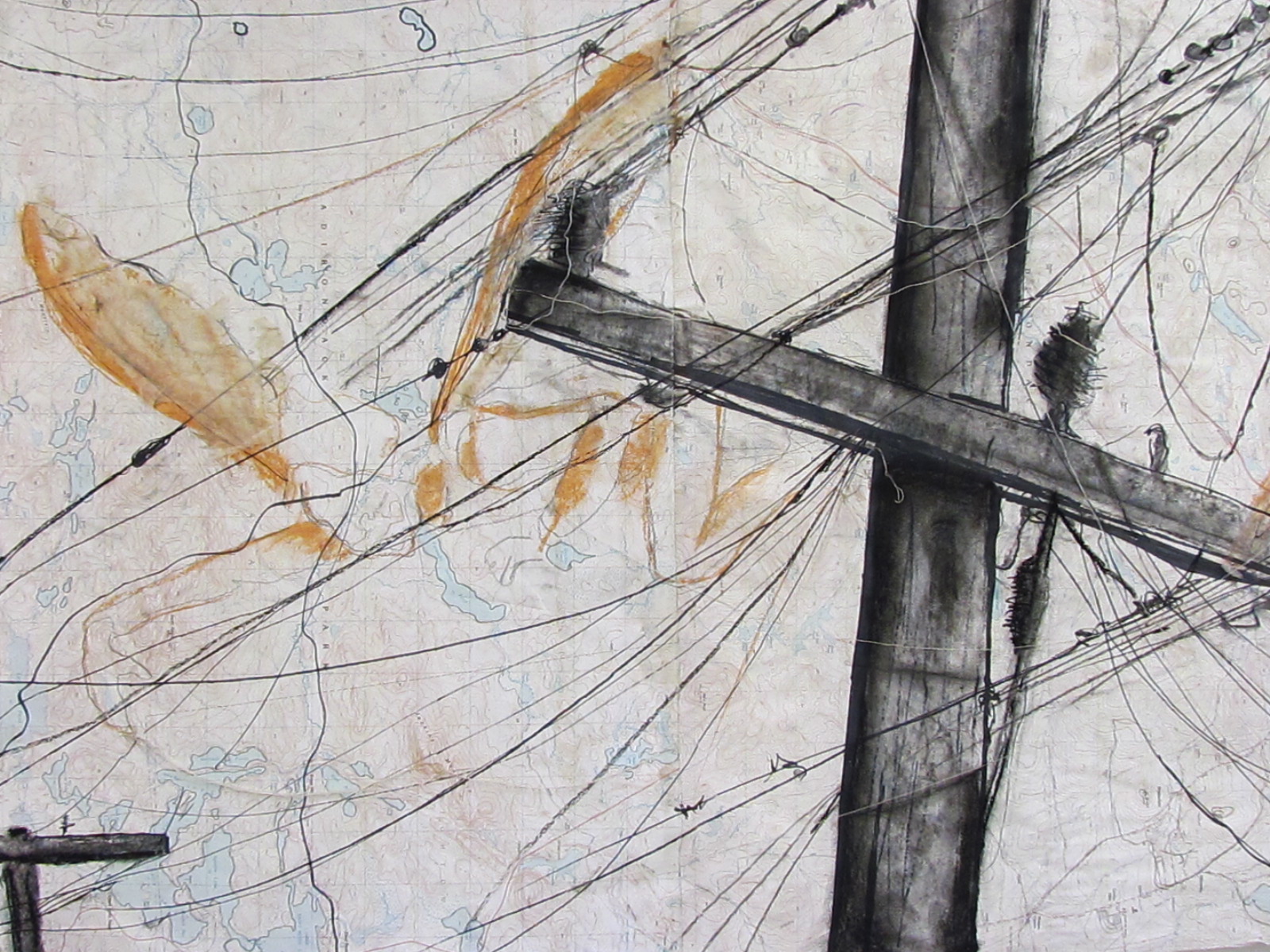 I visually explore landscape as inspired by looking through the lens of sustainability. This exploration considers a landscape in terms of systems and substances. Through papermaking, printmaking, mixed media assemblage and collage, drawing, and burning, layered images draw on multiple places and perspectives. The pieces represent “landscape” as the spatial entity of area that integrates the environment, living systems, and the human-made.