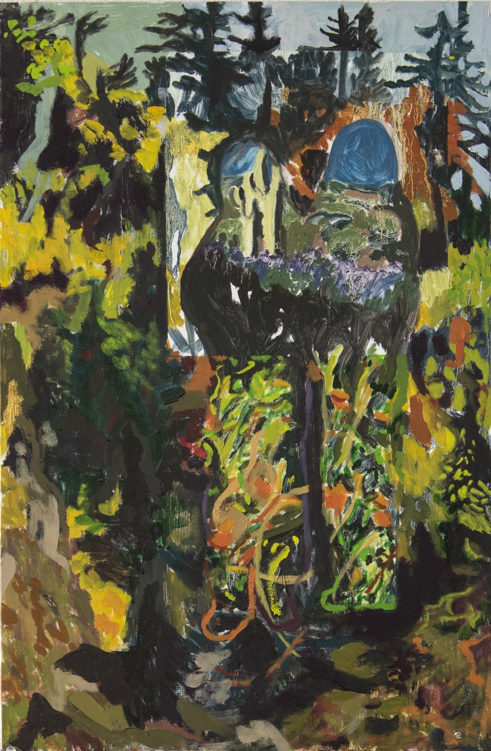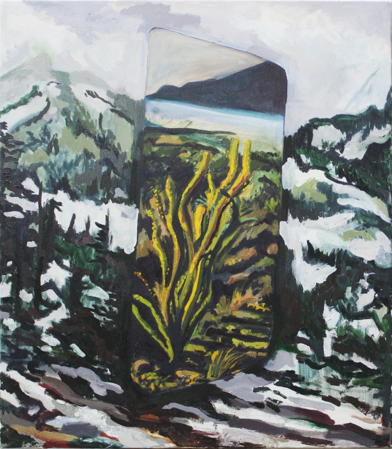 | dc.description.abstract | I create paintings in which one landscape is disrupted by the insertion of a disparate landscape into the same composition. By way of this juxtaposition, I seek to illustrate sensory experience as fractured, multiple, and simultaneous. I also paint figures with tenuous edges, whose relation to surrounding space represents the meeting of the individual with the world, and the way the two act on one another. I attempt to complicate boundaries between objects and space, using the shared edges of forms as sites of visual destabilization. My goal is to enact, in paint, the tension between a unified plane of perception and its fractured parts. My hope is that my paintings may activate an awareness of the fragmented nature of our perception, and by extension, the way we conceive of and situate ourselves in time and space. | en_US |